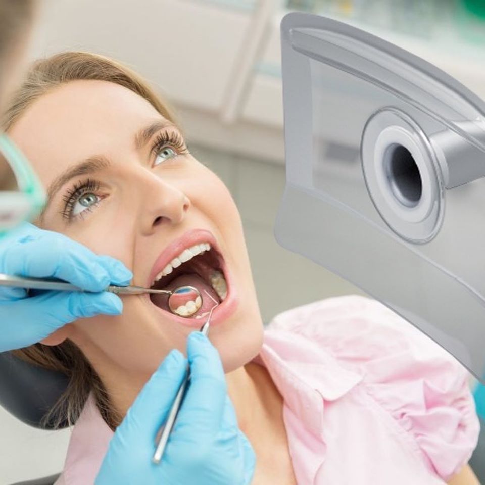 Quello che finora sono state descritte sono le indicazioni fornite dal Ministero della Salute per la salvaguardia dei pazienti e del personale operante nelle strutture odontoiatriche, noi però abbiamo deciso di fare un ulteriore investimento per aumentare la vostra e la nostra sicurezza, sapendo che uno dei momenti critici delle nostre terapie è la nebulizzazione prodotta dall’ablatore e dalla turbina , abbiamo acquistato due aspiratori per l’aereosol che vengono posizionati vicino alla bocca del paziente in modo da recuperare la gran parte dell’aereosol prodotto e di convogliarlo all’interno della macchina facendolo passare tramite una serie di filtri in grado di bloccare sia i batteri che i virus.